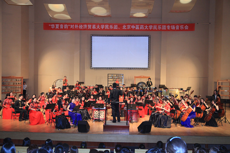 5月31日晚,我校大學(xué)生藝術(shù)團(tuán)民樂團(tuán)在中央民族樂團(tuán)音樂廳與對外經(jīng)濟(jì)貿(mào)易大學(xué)民樂團(tuán)舉辦 “華夏音韻”民樂專場音樂會。副校長翟雙慶、對外經(jīng)濟(jì)貿(mào)易大學(xué)副校長趙忠秀與兩校師生共同聆聽此次音樂會。