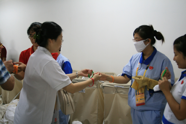 黨委副書記谷曉紅向志愿者贈送微笑圈