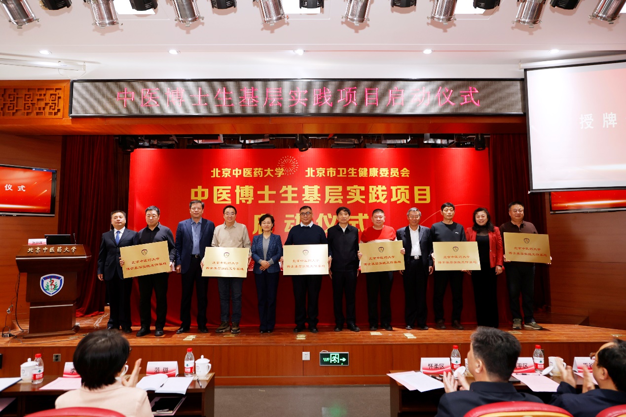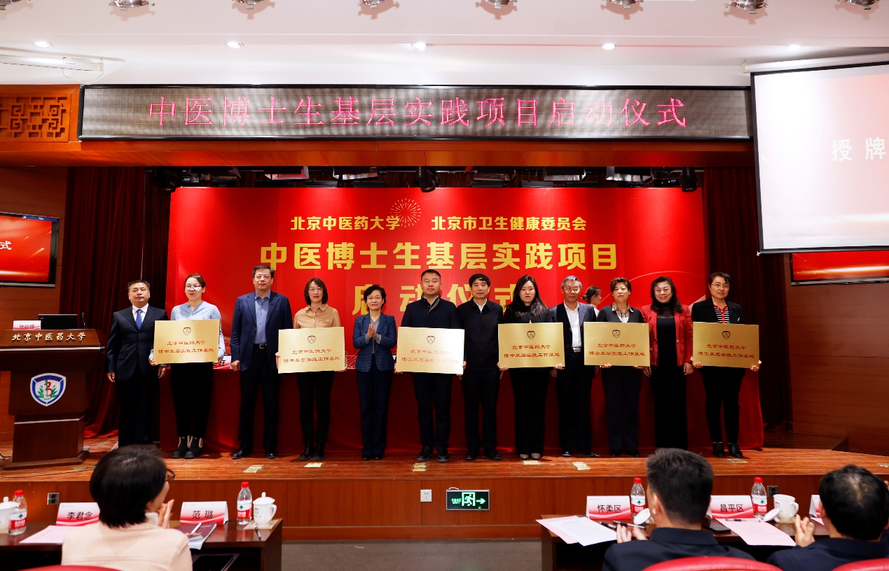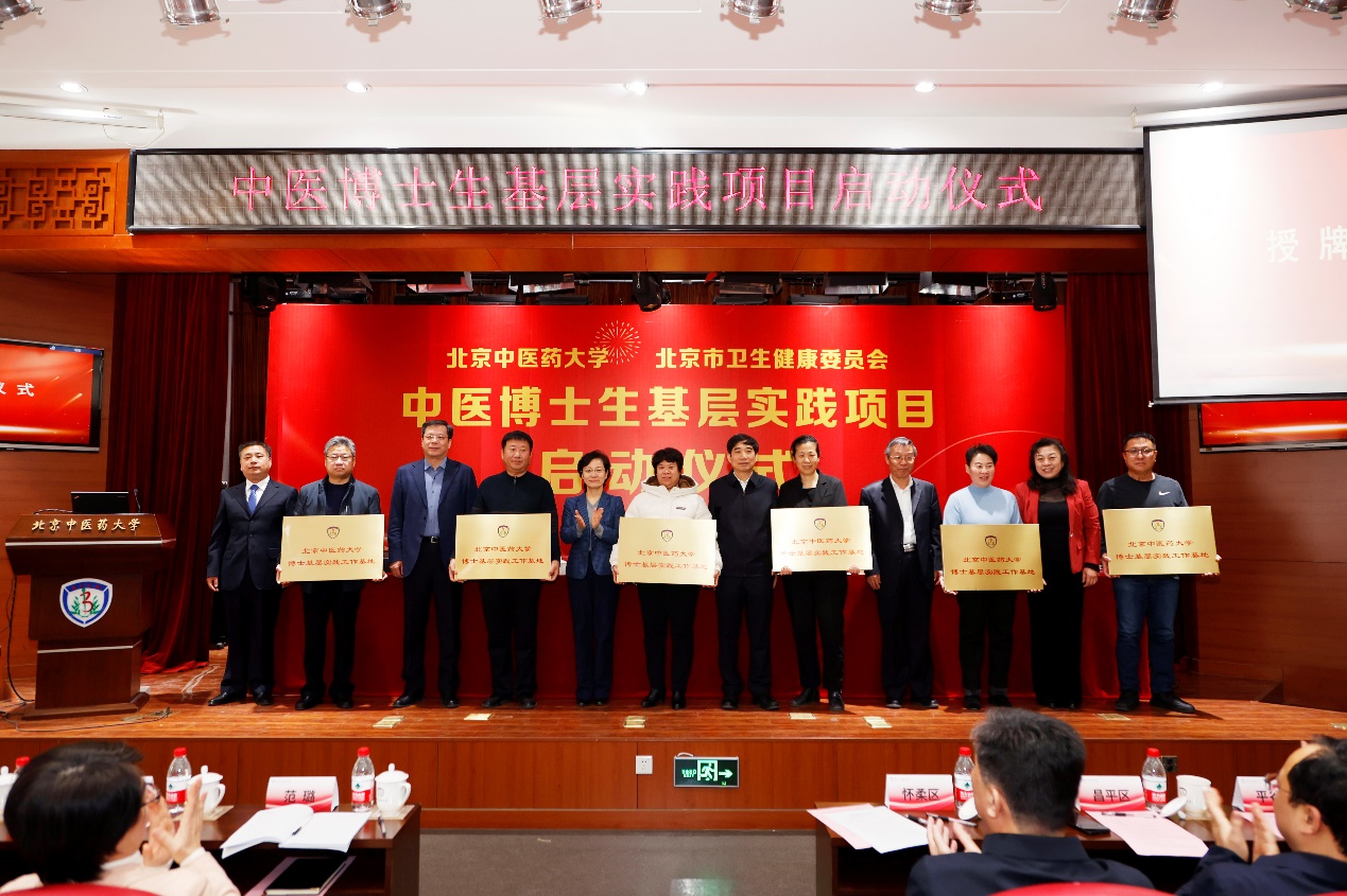 我校與北京市衛健委簽訂了基層實踐合作框架協議,校領導與北京市衛健委領導共同為全市7個生態涵養區承接首批博士基層實踐的18家社區衛生服務中心頒授“北京中醫藥大學博士基層實踐工作基地”牌匾。
