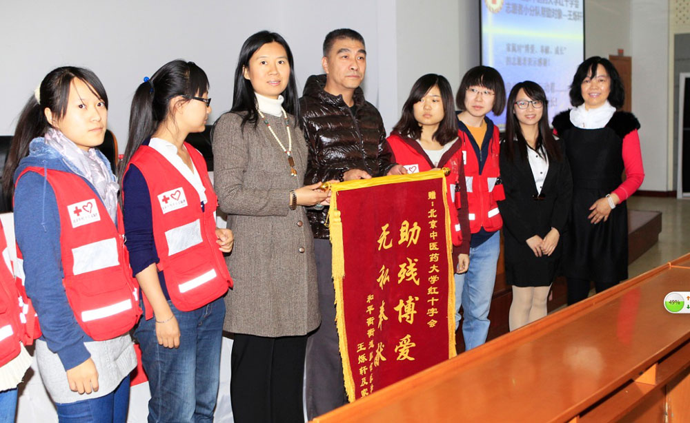 活動中,周杰主任向大家介紹了王爍軒小朋友的情況,并對近三年來北京中醫(yī)藥大學校紅十字會志愿者所做的工作以及取得的成效給予了充分的肯定和贊揚。王爍軒的父親向大家宣讀了感謝信,講述了三年來志愿者對軒軒各方面的幫助,以及軒軒學習上的進步、日益堅強和樂觀人生的態(tài)度轉變。丁霞處長在發(fā)言中指出,近三年的志愿服務使我校紅十字會成員受到了鍛煉、思想得到了提高,在服務的過程中展現(xiàn)出了醫(yī)學生的責任與擔當,更是對我校“勤求博采,厚德濟生”校訓的踐行。我校紅十字會志愿者承諾,一定會將愛心傳遞下去,為軒軒和更多需要幫助的人奉獻力量。最后,王爍軒家長向校紅十字會贈送錦旗并和全體到場人員合影留念。