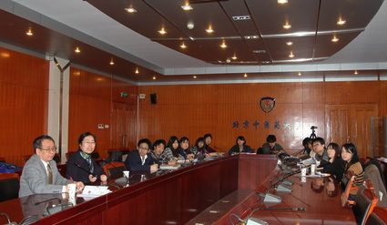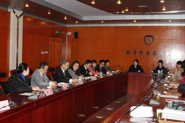 我校為體驗團安排了豐富多彩的中醫(yī)藥和中華文化體驗日程。在為期十天的體驗活動中,共有八次中醫(yī)文化講座,涵蓋了中國中醫(yī)藥發(fā)展體系和中醫(yī)藥高等教育狀況、中醫(yī)學發(fā)展史、中醫(yī)學概論、針灸和推拿療法、日常常用中藥、由谷曉紅副書記講授的中醫(yī)養(yǎng)生等方面,力求讓學生們對中醫(yī)有一個全面的初步認識。在交流座談環(huán)節(jié),兩校學生分別介紹了各自學校的情況,并就各自關(guān)心的問題進行了溝通,氣氛十分活躍,達到了文化交流和融合的效果。另外,體驗團還參觀了我校圖書館、中醫(yī)藥博物館、附屬東方醫(yī)院、國醫(yī)堂和同仁堂藥店,并學習了中華傳統(tǒng)健身操,進一步直觀體驗了中醫(yī)藥的魅力。他們在課余時間觀看了中華文化歷史劇《金面王朝》、武術(shù)表演《什剎海》,參觀了孔院總部,游覽了長城、故宮、天壇等名勝古跡及王府井、前門等商業(yè)區(qū),品嘗了烤鴨等中華美食,切身感受了中華文化的博大精深與兼容并蓄。在體驗團訪問期間,徐安龍校長親切慰問了全體學生,并與同學們進行了短暫的交流。