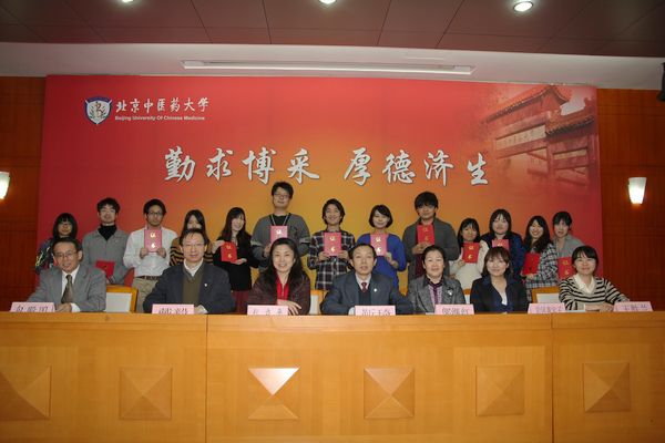 靳琦副校長在結(jié)業(yè)儀式上代表學校對順利完成體驗活動的學生們表示了祝賀,他期望學生們在不同講座中汲取營養(yǎng),豐富自己的知識體系,同時期望學生們回國后,更加努力學習,憑借所學推動中醫(yī)藥在日本的發(fā)展,讓更多日本人民了解真實的中國,了解中醫(yī)藥的真實發(fā)展狀況。體驗團吉川茂男同學代表全體學生發(fā)言,他感謝了我校對體驗團的盛情接待,并暢談了此次參加體驗團的感受,表示在回國后會將此次豐富的體驗活動與同學和身邊人分享。最后,靳琦副校長為所有同學頒發(fā)了結(jié)業(yè)證書。