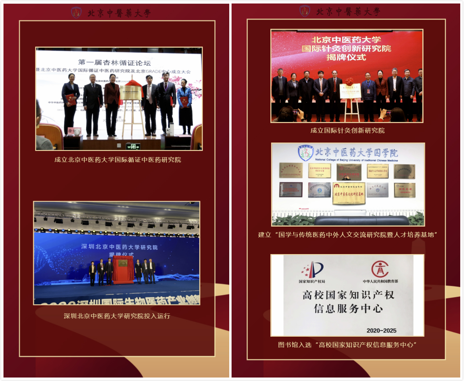 成立北京中醫(yī)藥大學(xué)國際循證中醫(yī)藥研究院、北京GRADE中心,全面布局國內(nèi)外中醫(yī)藥循證醫(yī)學(xué)領(lǐng)域。面向抗疫新需求及時組建中醫(yī)疫病研究院。深圳北京中醫(yī)藥大學(xué)研究院投入運行,在推進(jìn)產(chǎn)學(xué)研用有機(jī)融合上邁出新的一步。成立國際針灸創(chuàng)新研究院,聯(lián)合國內(nèi)外優(yōu)勢科研團(tuán)隊和骨干力量協(xié)同攻關(guān)。建立“國學(xué)與傳統(tǒng)醫(yī)藥中外人文交流研究院暨人才培養(yǎng)基地”。圖書館入選“高校國家知識產(chǎn)權(quán)信息服務(wù)中心”。多項科研成果實現(xiàn)技術(shù)轉(zhuǎn)讓,科技成果轉(zhuǎn)化能力進(jìn)一步提高。