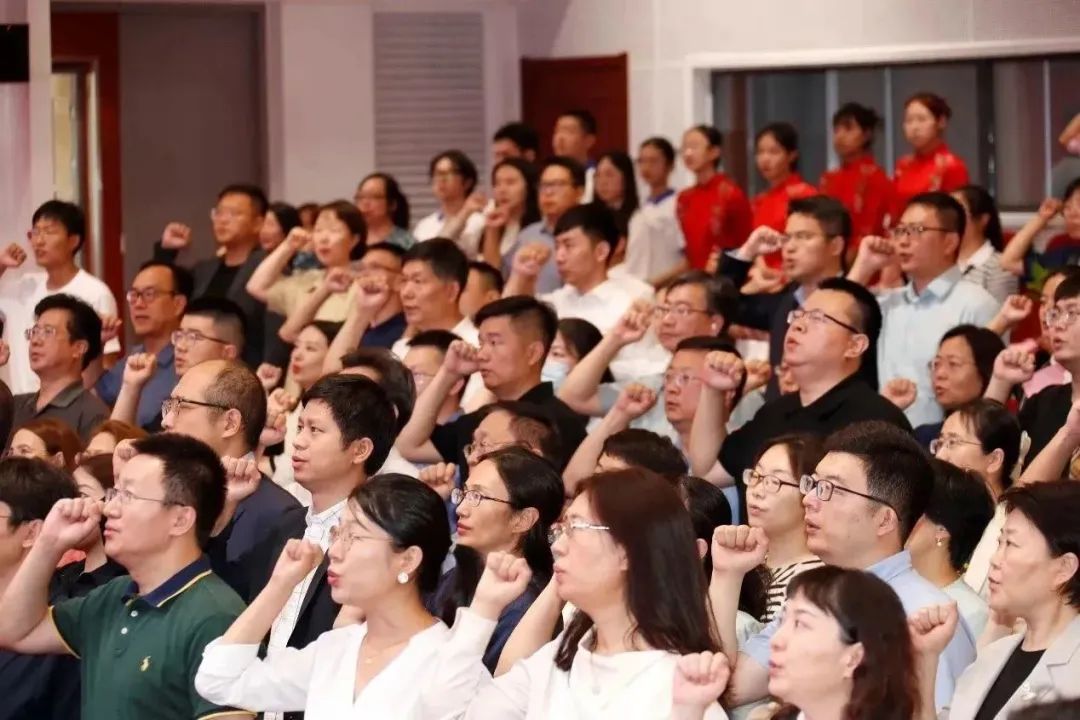 由孫建寧教授領誓,全場教師舉起右拳,高聲誦讀《人民教師誓詞》。