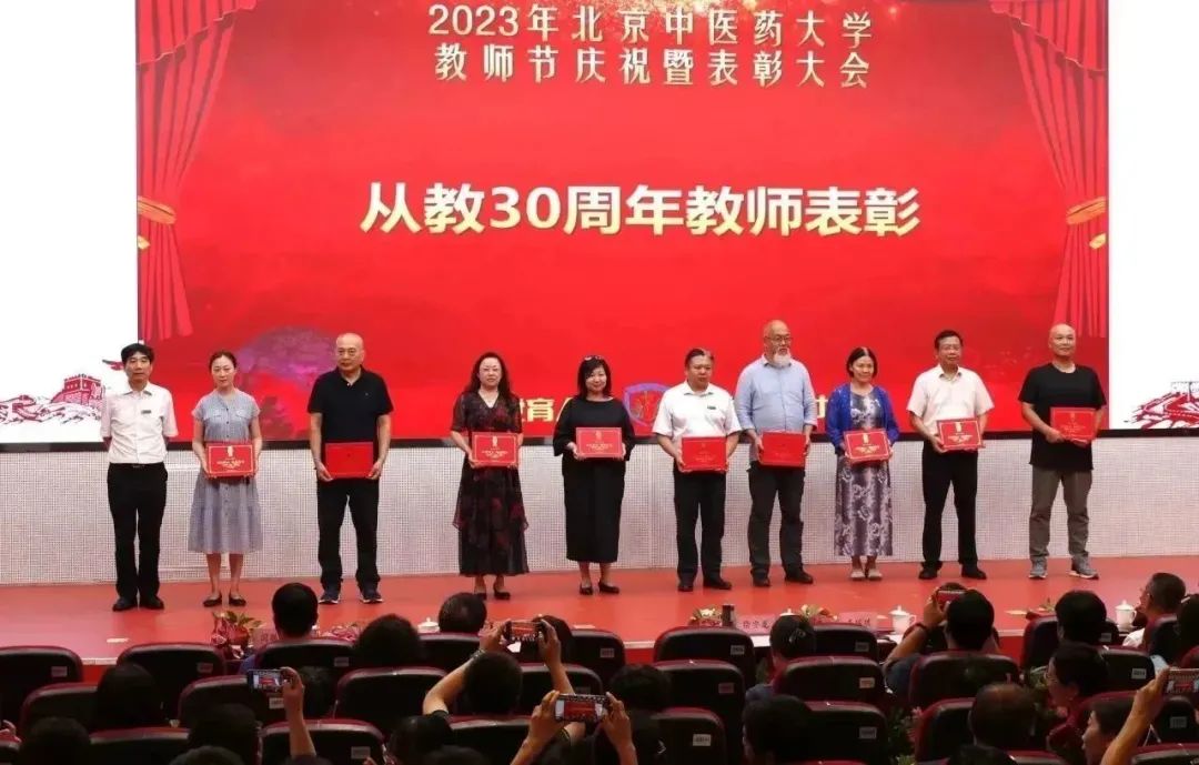 9月7日下午,在第39個教師節到來之際,北京中醫藥大學2023年教師節慶祝表彰大會在良鄉校區西院綜合樓一層報告廳舉行。大會以“耕耘杏壇,強國有我”為主題,表彰作出突出成績的優秀教師,致敬資深教師的情懷與堅守,共同擔當立德樹人使命。校領導,獲獎教師代表,榮休教師代表,來校工作滿30年教職工代表,一線教師代表,各學院、各部門、各單位負責人,青年教師代表以及學生代表參加大會。大會由副校長陶曉華主持。