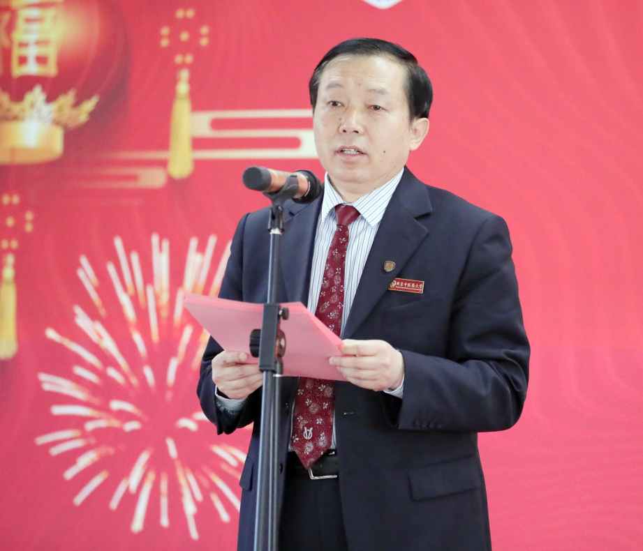 校長徐安龍代表學校發表新春致辭。徐校長說,2018年是難忘的一年,學校中醫學、中藥學、護理學專業認證,本科教學審核評估、研究生學位點評估完美收官,學校育人水平得到高度贊譽,北中醫的首善地位再次彰顯;良鄉校區成為學校主校區,學校建設格局有了新的發展;東直門醫院實現主體東遷通州,房山醫院完成新院區選址工作;深圳醫院和孫思邈醫院在兩年內快速發展提升,成為三級甲等中醫院,至此學校8家附屬醫院全部成為三甲,北中醫速度與智慧付出再次令人驚嘆。徐校長飽含深情地說,2018年,自己被一個個數字所感動,學校科技工作和學科建設不斷取得新突破,高端人才項目大有斬獲,核心競爭力進一步增強;被一個個榮譽所感動,學校在各個領域佳績頻傳,社會美譽度不斷提高;被一個個場景所感動,難忘全體北中醫師生員工為學校發展建設愛崗敬業、拼搏奮斗的感人畫面。他代表學校“感謝每一位北中醫人,因為你們的付出和努力,北中醫的事業才有了今天的薪火相傳;感謝學校的老教師、老領導,你們的榜樣力量不斷激勵著年輕一輩披荊斬棘、勇創佳績;感謝廣大校友,你們始終踐行著母校‘追求卓越,止于至善’的精神,成為學校建設發展中最可信賴的社會力量和重要資源。感謝相關合作單位,攜手開創中醫藥發展的新局面” 。