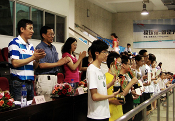 閉幕式上,我校學生組成的B.R組合、叮當街舞社分別表演了精彩的“Rap”和街舞表演。校健美操隊表演了曾在北京市健美操比賽中獲得冠軍的“六人踏板操”。