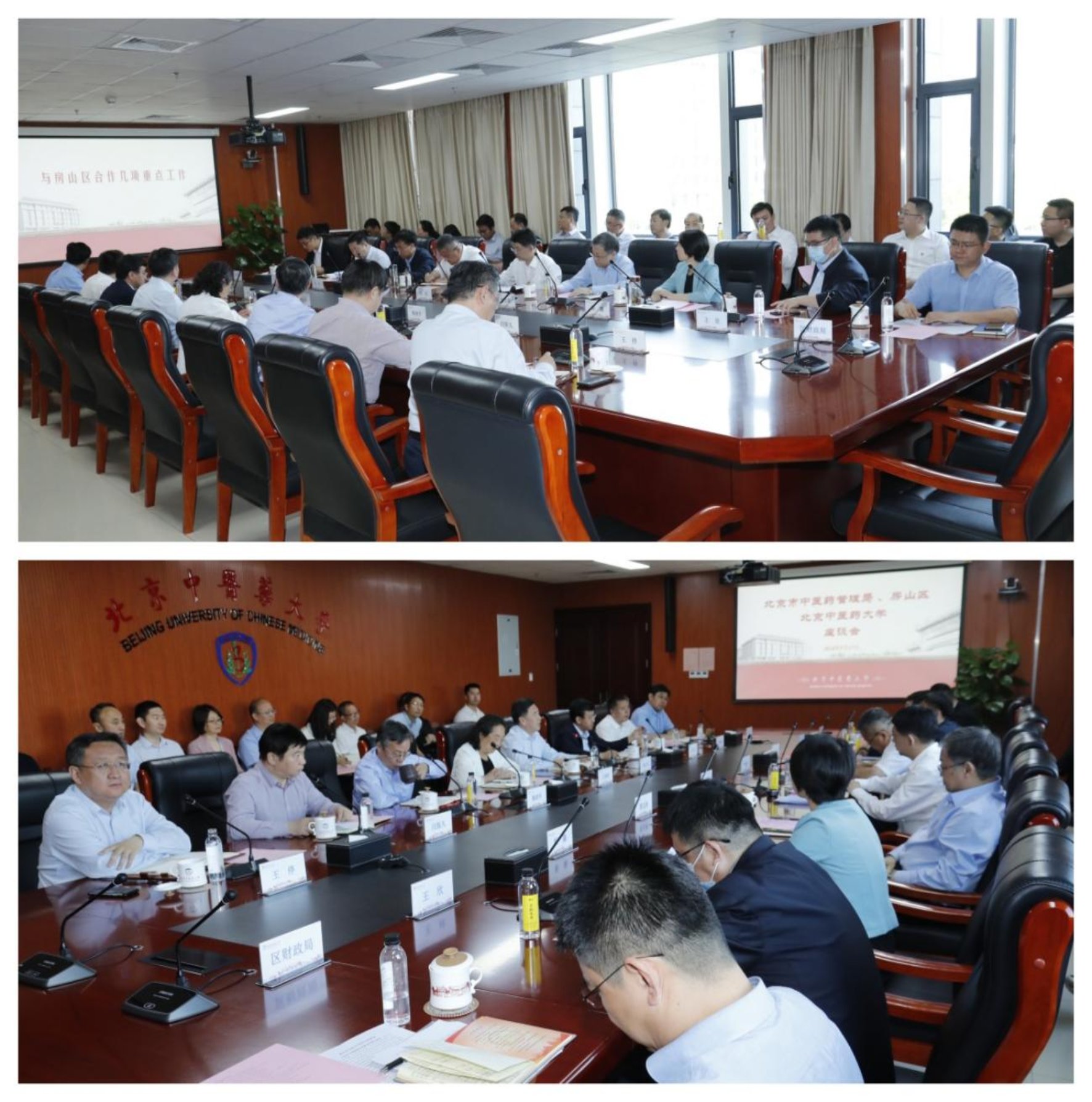 5月17日,北京市中醫藥管理局局長屠志濤,房山區委書記陽波和區委副書記、代區長底志欣及房山區相關單位主要負責同志一行到北京中醫藥大學調研指導,共商市、區、校合作共建發展。