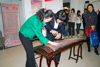 傳統文化體驗館的外層是綜合展示館,每一面墻都由參加展示的各個社團精心裝飾,散發出濃郁的傳統文化氣息,體驗館的內部是專項體驗館,在今天的民樂體驗館中,同學們為參觀的老師和同學們演奏了民樂曲目,并邀請現場的老師和同學親身體驗演奏民樂樂器的感覺,谷曉紅副書記還在現場親自體驗了古箏、豎笛等民族樂器。谷曉紅副書記在參觀完民樂展后說,通過親身體驗和近距離感受民族樂器和民樂文化,不僅能夠充分了解祖國的傳統文化,還能練就一份豁達開闊的心境,希望能夠通過本次文化體驗館,讓更多的同學能夠接觸傳統文化、了解傳統文化,進一步讓同學們感受文化的魅力,讓同學們能夠更加快樂、健康的成長。隨后,谷曉紅副書記還在文化墻上書寫了校訓“勤求博采、厚德濟生”勉勵大家。