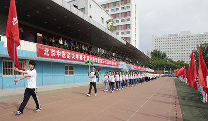 在歡樂的氣氛中,副校長谷曉紅教授宣布:北京中醫藥大學2014年第十屆體育節暨運動會開幕!