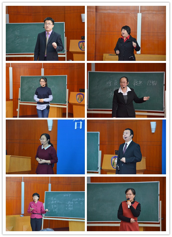 本次決賽實際參賽選手120人,其中校本部60人(高級組30人、中初級組30人),臨床醫院組60人(高級組27人,中初級組33人),共分8個小組進行比賽。6日、7日每天四個小組同時進行比賽并當場評選確定了本組獲獎教師名單,8日上午舉辦了由各小組冠軍參加的總決賽。經過三天的激烈角逐,第三臨床醫學院、北京中醫醫院獲得團體一等獎,北京中醫醫院李伯華老師、中醫學院于河老師獲總決賽特等獎,北京中醫醫院李伯華老師、李宇棟老師,中醫學院于河老師、劉丹彤老師,中藥學院方芳老師,第三臨床醫學院閆英老師、劉蘭英老師,管理學院蔣艷老師,分別獲得各小組一等獎。獲獎詳細名單教務處將另行發文公布。