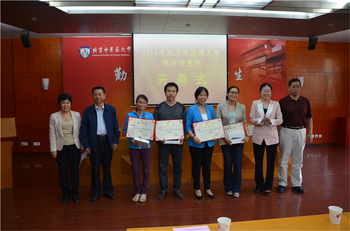 會上,對2013年全校教師講課比賽、優秀BB網絡課程評比的獲獎教師進行了表彰,校領導向獲獎教師頒發了證書及獎品。隨后,基礎醫學院獲獎教師代表謝鳴從一位資深教授的角度發表了獲獎感言,并從教學模式以及對青年教師的期望等方面給予建議。2014學生競賽周承辦學院代表第一臨床醫學院高穎副院長,從近幾年承辦學生競賽周的情況以及今后的改革完善措施等幾方面進行了經驗交流。