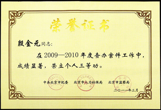 4月21日,北京市紀(jì)委、北京市人力資源和社會(huì)保障局、北京市監(jiān)察局聯(lián)合召開(kāi)了北京市紀(jì)檢監(jiān)察系統(tǒng)查辦案件工作座談會(huì)暨辦案表彰大會(huì),對(duì)2009—2010年度北京市紀(jì)檢監(jiān)察系統(tǒng)查辦案件工作先進(jìn)集體及先進(jìn)個(gè)人進(jìn)行了表彰獎(jiǎng)勵(lì)。
