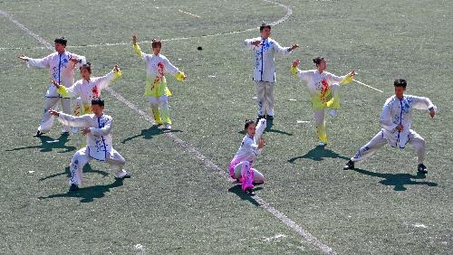 運動員代表和裁判員代表進行了莊嚴的宣誓,隨后,離退休工作處、全校教職工、2014級同學和我校高水平武術(shù)隊進行了精彩的表演。綠茵場上,五顏六色的隊服彰顯出北中醫(yī)人的活力,自信舒展的動作體現(xiàn)了北中醫(yī)人昂揚向上的心態(tài),青春、活力、自信,洋溢在運動場的每一個角落。