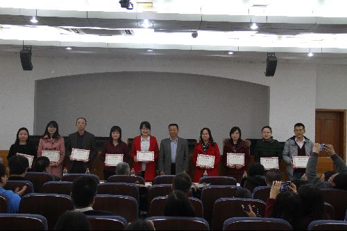 接著,大會對2014-2015學年我校“優秀輔導員”及“十佳班主任”進行了表彰。譚靜和馬捷分別作為優秀輔導員和優秀班主任代表發言,他們從自身工作經驗出發,認為學生工作中應以真誠換真心,關心深入學生的日常生活,以小事入手做好學生的思想引領。