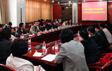 4月10日下午,學校召開良鄉校區工程建設指揮部成立動員大會。校黨委書記吳建偉,校長高思華,黨委副書記兼紀委書記常江,副校長徐孝、喬延江,黨委常委、組織部部長馬繼福,校長助理、教務處處長翟雙慶,校長助理、發展規劃處處長鄔國強等出席會議。良鄉校區工程建設指揮部全體成員、各專項工作小組成員、各二級學院工作小組成員參加了會議。喬延江副校長主持動員會。