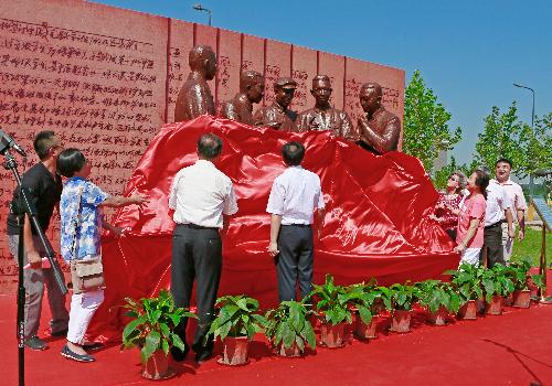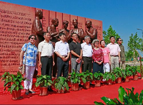 最后,出席典禮的領導、嘉賓共同為“五老上書”群雕揭幕。