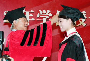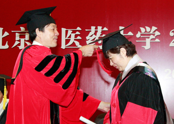 王慶國副校長代表學校致辭。他首先向圓滿完成學業并獲得學位的2960位同學表示衷心的祝賀,并代表全體師生向同學們提出了期望:希望同學們志存高遠、報效國家,以高昂的熱情投身到建設有中國特色的社會主義偉大事業中,為國家的富強、人民的幸福貢獻自己的力量;希望同學們能夠運用所學知識,充分吸納現代科技成果,以繼承和發展中醫藥學為己任,以提高人類健康水平為目標,推動中醫藥現代化、促進醫學科學的進步;希望同學們時刻不要忘記人民是我們的父母,時刻不要忘記“濟世救人”的古訓,為我國人民乃至世界人民的健康事業不懈努力。