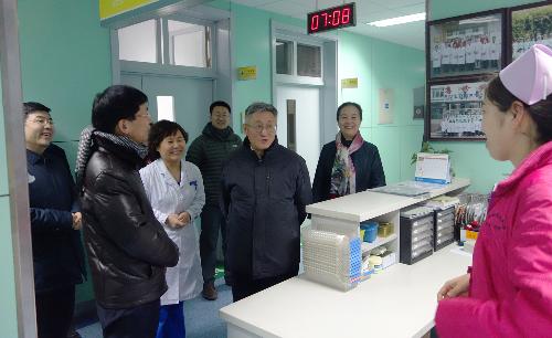 6:40,吳書記一行就到了第三附屬醫院。他和三附院黨委書記楊晉翔、院長劉金民和機關處室相關負責人一起,先后慰問了急診、門診等值班單位的值班醫務人員。每到一處,吳書記都與當班的醫生、護士一一握手,向一線員工及他們的家屬拜年,并送上新年賀禮。吳建偉書記叮囑大家要搞好春節值班工作,忠于職守,以自己的辛勤勞動確保患者過一個歡樂祥和的春節。