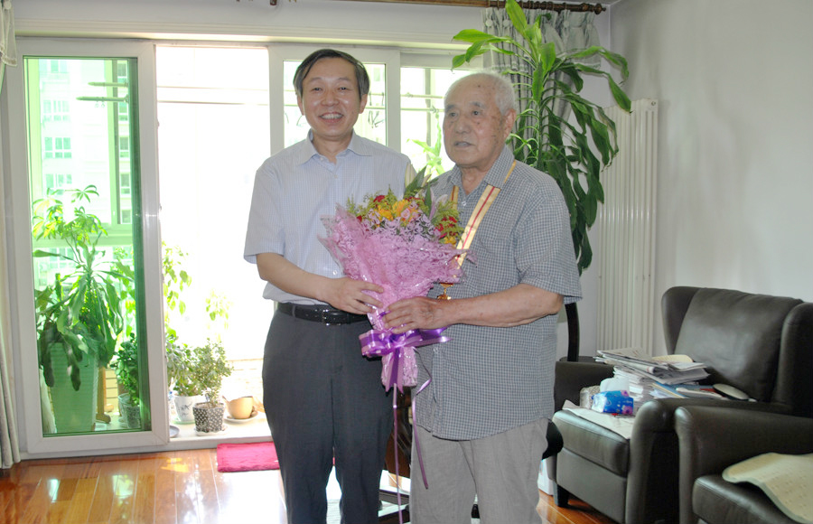 今年是世界反法西斯戰(zhàn)爭(zhēng)暨中國(guó)人民抗日戰(zhàn)爭(zhēng)勝利70周年。8月28日,學(xué)校黨委組織走訪慰問了劉文泉、李同生、李唯辛、姜炳赤、葉帆、孫平六位抗戰(zhàn)時(shí)期參加革命工作的離休干部,并將抗日戰(zhàn)爭(zhēng)勝利70周年紀(jì)念章和慰問金送到六位老同志手中。