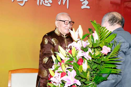 隨后,學校領導,相關職能部門、學院負責人,顏正華工作室代表、顏老學生弟子代表向顏正華教授贈送了紀念品和鮮花。顏正華教授學術經驗傳承人代表常章富教授,顏正華教授學生代表、國家中醫藥管理局中國中醫藥科技開發交流中心主任黃暉,顏正華教授學術經驗傳承人代表、北京市中醫藥學會秘書長鄧娟先后發言,暢談了顏正華教授學術思想和學習、跟師體會。