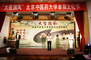 “大醫國風”北京中醫藥大學首屆文化節是我校繼學術節、體育節、藝術節之后的又一重要品牌活動,本屆文化節的主要內容以傳統文化為主題。希望同學們通過積極參與本屆文化節的各項活動,能夠重溫國學經典,體驗華夏文明的精髓,感受大醫大家的品格操守,進一步弘揚中醫藥文化。