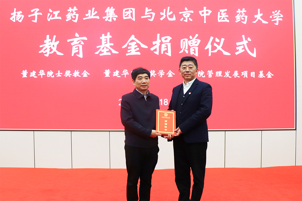 座談會上還舉辦了教育基金捐贈儀式,為了講好中醫藥故事,感恩董建華院士為企業發展所作出的貢獻,揚子江藥業捐贈資金將用于董建華院士獎學金、獎教金以及醫院管理,激勵更多北中醫人以董老為榜樣,勤奮工作,學以致用,服務百姓。