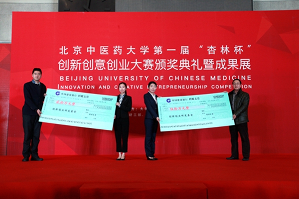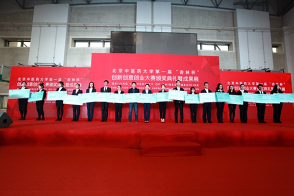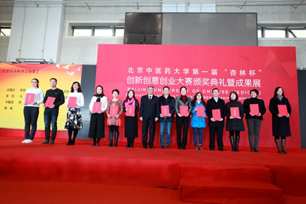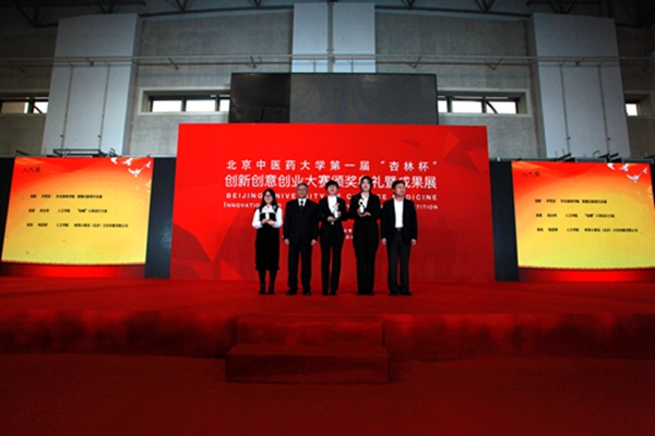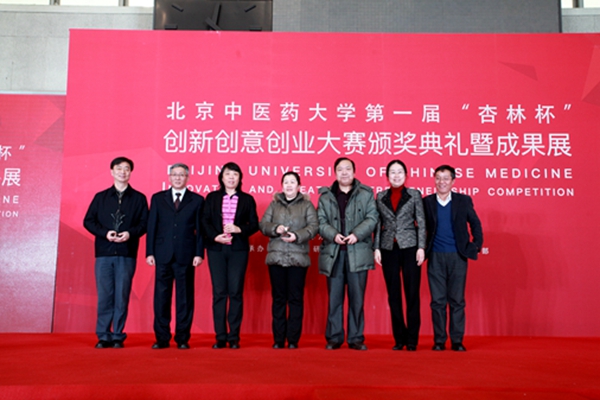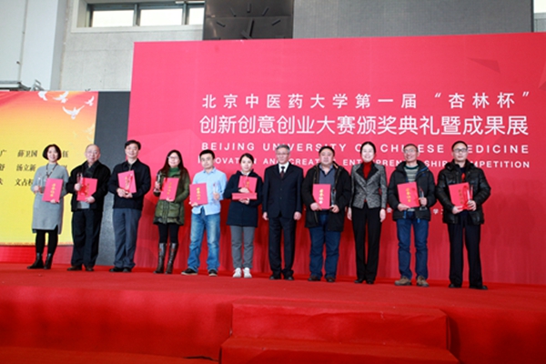 12月21日下午,我校舉行第一屆“杏林杯”創(chuàng)新創(chuàng)意創(chuàng)業(yè)大賽頒獎典禮暨成果展。我校黨委書記吳建偉,副校長谷曉紅,校黨委副書記、副校長翟雙慶,副校級干部陶曉華,北京股權(quán)交易中心總經(jīng)理成九雁,北京千年本草健康科技有限公司董事長朱賀年,順禧基金合伙人李文鴻,全球華人創(chuàng)新大會總策劃岳路平,國融資本總經(jīng)理柴覓皞,中國中醫(yī)科學(xué)院研究員崔曉蘭,北京生涯互聯(lián)科技有限公司董事長姜萌,世紀(jì)潤和品牌管理(北京)有限公司董事長丁永勝,北京麥活無限網(wǎng)絡(luò)科技有限責(zé)任公司副總經(jīng)理張玎出席了典禮。學(xué)校各學(xué)院、職能部門負(fù)責(zé)人,導(dǎo)師代表,學(xué)生代表共計300余人參加了此次活動。