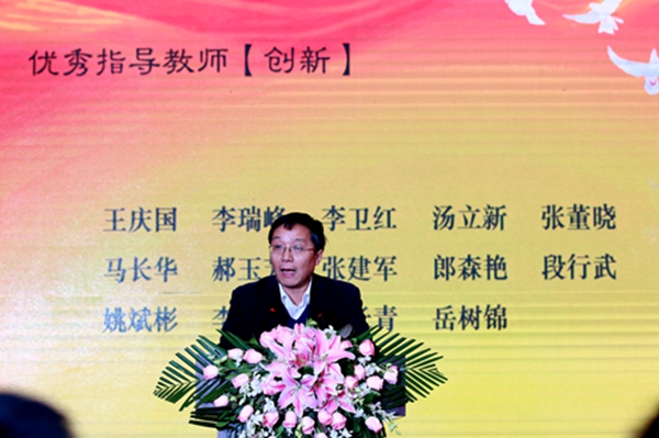 優(yōu)秀指導(dǎo)教師代表湯立新對學(xué)生的團(tuán)隊協(xié)作能力給予了肯定,對學(xué)校提供的平臺表示感謝,并鼓勵學(xué)生繼續(xù)保持創(chuàng)新創(chuàng)業(yè)的好品質(zhì)。