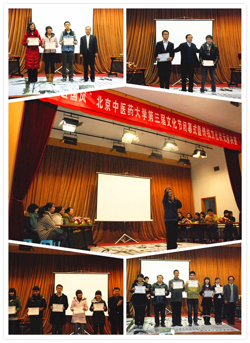 谷曉紅副書記在致辭中,肯定了本屆文化節所取得的成績與突破,用詳盡的數據點評了本屆文化節各項活動的特色,并與大家分享了她對文化的理解,提出醫學生應具備仰視宇宙之大、俯察品物之盛的能力,對人對己充滿熱忱與信仰,心靈清凈去做事。副校長徐孝、靳琦及馬繼福部長分別為獲得本屆文化節優秀組織獎、突出貢獻獎及開幕式經典誦讀比賽優勝獎的組織和個人頒獎,并表達了對文化節的良好祝愿。