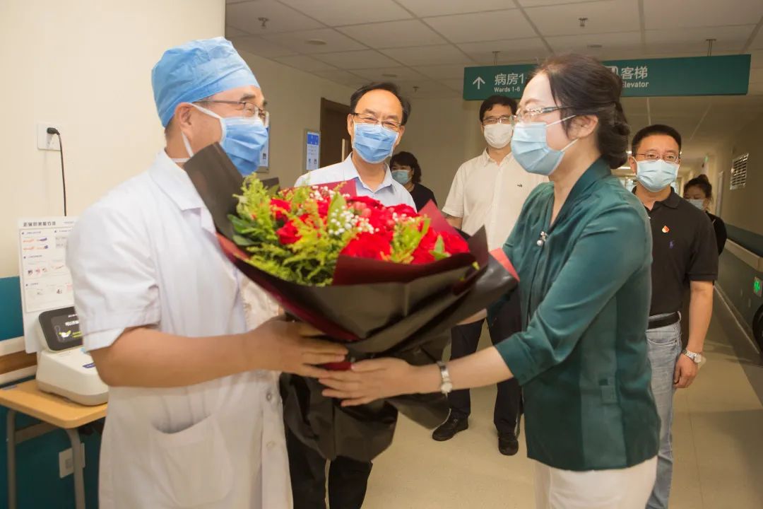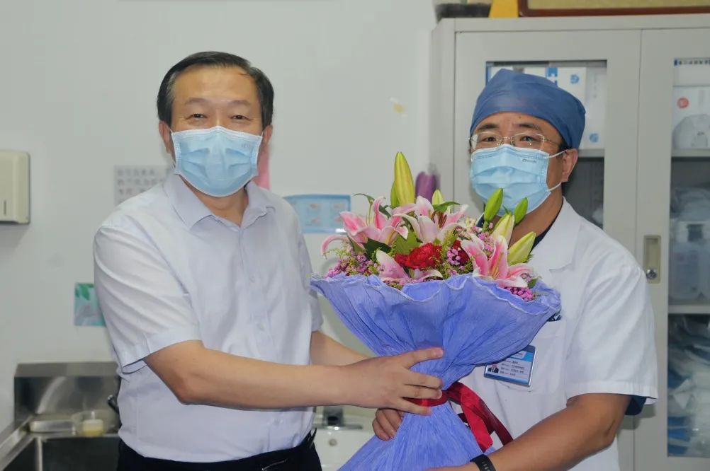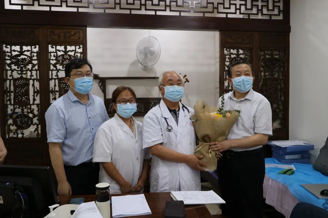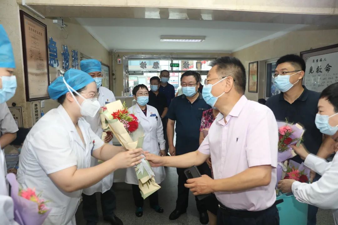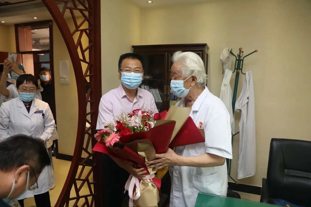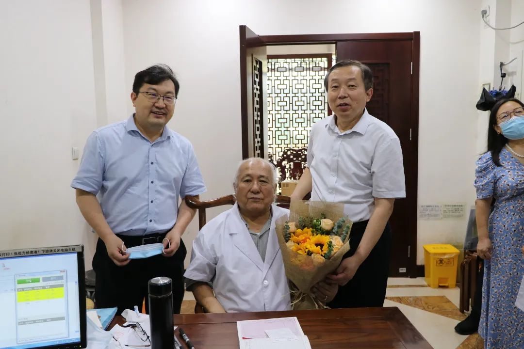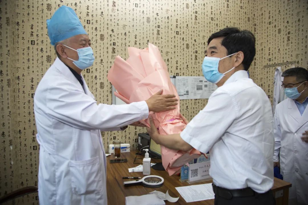 靳琦副書記一行還來到國醫堂中醫門診部,看望慰問劉燕池、王慶國等今天出診的專家教授和校醫院醫生代表。靳琦副書記代表學校為出診的醫生送去祝福,獻上鮮花,感謝大家在疫情期間堅守崗位,盡職盡責,為維護人民健康及中醫藥傳承發展做出的貢獻。