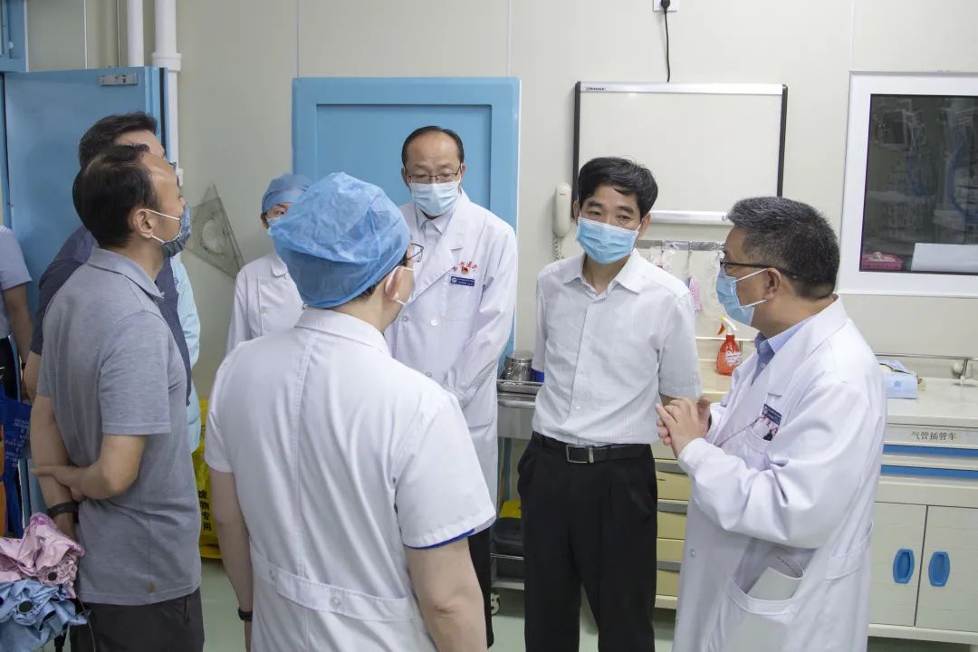校長徐安龍一行來到第二臨床醫學院(東方醫院),為工作在醫院臨床一線的老專家和醫務人員送去節日的問候和祝福。徐安龍校長來到名醫堂、眼科、耳鼻喉科看望了李元文、姜良鐸、韋企平、劉大新四位老專家,詢問他們的工作生活情況,轉達學校對他們的關心和慰問。在劉大新教授診室,當看到墻上“以患為師”的牌匾時,徐校長說:“患者就是我們的老師,我們的醫務人員就應該有這種理念和精神,要向老專家學習。”在急診科、發熱門診和兒科,徐校長看望慰問了在崗的醫務人員,向大家長期以來在疫情防控工作中所付出的努力表示感謝,勉勵大家繼續以飽滿的熱情、強烈的責任心和使命感全身心地投入到防疫工作中,確保醫院院感工作萬無一失。