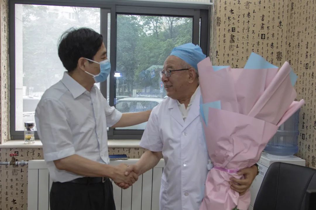 校黨委副書記、副校長翟雙慶一行來到第六臨床醫學院(房山醫院),慰問奮戰在一線的醫務工作者。翟雙慶副校長一行首先來到結石科,看望慰問93歲高齡仍堅守醫療一線的首都國醫名師韓臣子教授。隨后看望了發熱門診、急診科、泌尿外科的醫務人員,向奮戰在臨床一線的醫師們送上節日的問候與祝福,對他們在新冠疫情防控形勢下堅守崗位、忘我工作、無私奉獻給予高度贊揚。翟雙慶副校長勉勵大家說,醫師、教師是兩個高尚的職業,懸壺濟世、教書育人為一體,大家要以永恒之初心踐行好這神圣的使命。