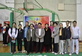 10月31日至11月4日,基礎醫學院第五屆“桃李杯”師生羽毛球賽決賽在我校西區體育館成功舉辦。共有16支學生隊伍及5支教師隊伍參加了比賽,比賽采取團體淘汰賽賽制,設男子單打、女子單打、男子雙打、女子雙打、混合雙打五個項目。經過預賽、半決賽的激烈爭奪,教師一隊、教師二隊、11七中西醫結合B班、11教改班等四支隊伍進入決賽。校工會常務副主席汪以春,基礎醫學院黨總支書記馬燕東、基礎醫學院工會小組長許紅蒞臨決賽現場,為選手加油。冠軍爭奪賽在教師一隊和11級中西醫結合B班之間展開,最后,教師一隊的混雙選手潘彥舒、李柳驥老師奪得冠軍,11級中西醫結合B班屈居亞軍,11教改班及教師二隊分獲第三、四名。校工會常務副主席為獲獎選手頒發獎狀和獎品。