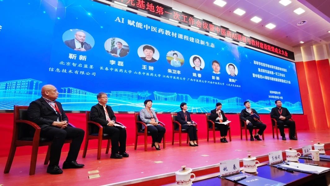 本次會議是落實全國教育大會精神、黨的二十大關于教育強國建設部署的關鍵行動,也是推進教育科技人才三位一體綜合改革的生動實踐。大會主要亮點集中在三大維度。一是,國家級平臺的戰略定位。作為全國中醫藥領域唯一的國家級教材建設平臺,基地的成立彰顯了國家對中醫藥教育事業的頂層設計與戰略布局。由王琦院士領銜的高規格學術委員會正式組建,匯聚40位頂尖專家學者,為新時代高質量教材建設筑牢學術根基。二是,產教融合的創新生態與多元參與?!爸嗅t藥AI課程與教材建設聯盟”以“AI賦能、課程創新、教材革新、共享共創”為核心理念,聯合44所中醫藥院校、多家頭部出版機構及150余位來自全國的領導、專家、學生代表,構建起覆蓋教育全鏈條的數字化生態體系。三是,科技賦能的突破性成果。大會重磅發布國內首個中藥學生成式教育大模型“薪火中國藥”1.0版本,以AI技術重構教材研發與應用場景,為智能教材開發、個性化教學提供了創新工具,也為AI賦能中醫藥教育科技人才培養奠定基礎。