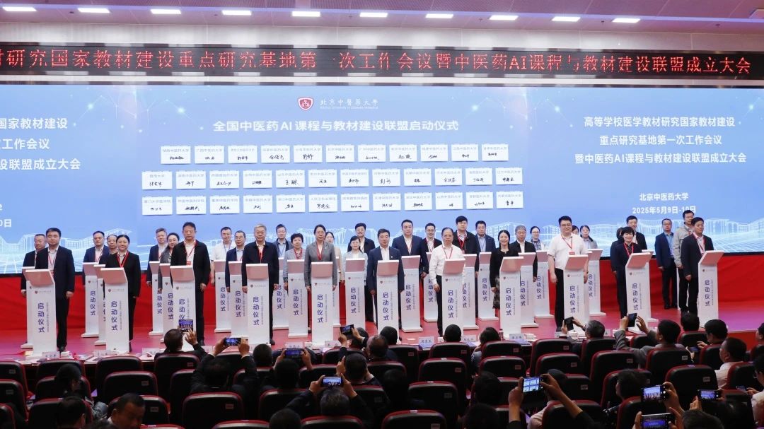 5月9日-10日,高等學校醫學教材研究國家教材建設重點研究基地第一次工作會議暨中醫藥AI課程與教材建設聯盟成立大會在北京中醫藥大學召開。教育部教材局、教育部科學技術與信息化司、國家中醫藥管理局人事教育司相關領導,北京中醫藥大學終身教授、中國工程院院士、國醫大師王琦,中國中醫藥出版社社長侯衛偉,來自全國44所高等院校的校領導,以及基地學術委員會專家、聯盟理事單位代表、全國各中醫藥院校專家、中醫9年制學生代表、我校教師代表、相關企事業單位代表和媒體記者共300余人參加會議。校黨委書記王瑤琪,校長唐志書,黨委副書記張繼旺,副校長閆振凡,黨委副書記、紀委書記劉江平,副校長劉存志出席了會議。
