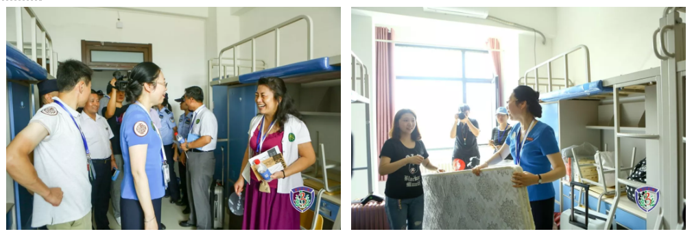 在學(xué)生公寓,谷書記一行細(xì)致詢問了新生入住體驗(yàn),詳細(xì)查看了公寓內(nèi)設(shè)施是否可以便捷使用。看到一名女生獨(dú)自在宿舍整理行李,谷書記即上前教她整理床鋪并幫助她把臥具抬到床上。每到一處,她都如家人般耐心詢問新生們學(xué)習(xí)生活安排情況和對入住環(huán)境的意見。