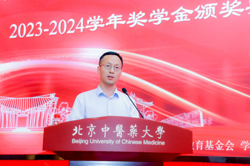 5月27日下午,北京中醫(yī)藥大學(xué)2023-2024學(xué)年獎(jiǎng)學(xué)金頒獎(jiǎng)典禮在良鄉(xiāng)校區(qū)舉行。全國學(xué)生資助管理中心信息管理處處長焦旭、北京中醫(yī)藥大學(xué)校長唐志書、社會(huì)捐贈(zèng)代表、部分職能部門負(fù)責(zé)人、各學(xué)院副書記、獲獎(jiǎng)學(xué)生代表及師生代表齊聚一堂,共同見證榮耀時(shí)刻。頒獎(jiǎng)典禮由校友會(huì)、教育基金會(huì)秘書長閆興麗主持。