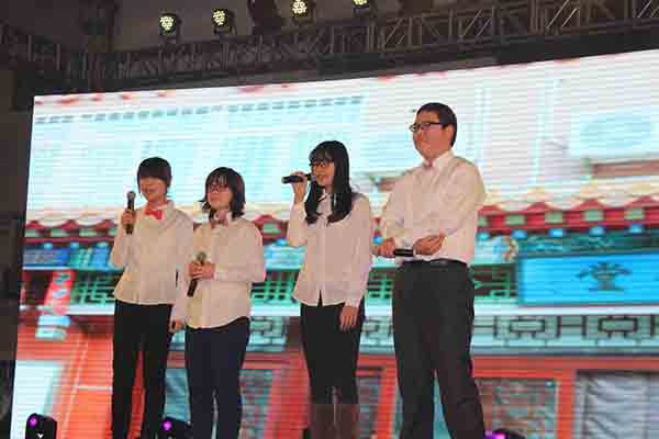 晚會以“在一起”為主題,“一起聽·光陰故事”、“一起說·花樣青春”、一起讀·成長喜悅”、“一起寫·美好未來”四個篇章層層遞進,表達師生同心,共創未來的美好期盼。我校海內外校友會,兄弟高校師生,著名小品藝術家馮鞏,主持人郎永淳、李佳明,演員胡歌、李晨,陳氏太極拳傳承人陳小旺,著名運動員張繼科等社會各界人士通過視頻向我校師生送來新年祝福。