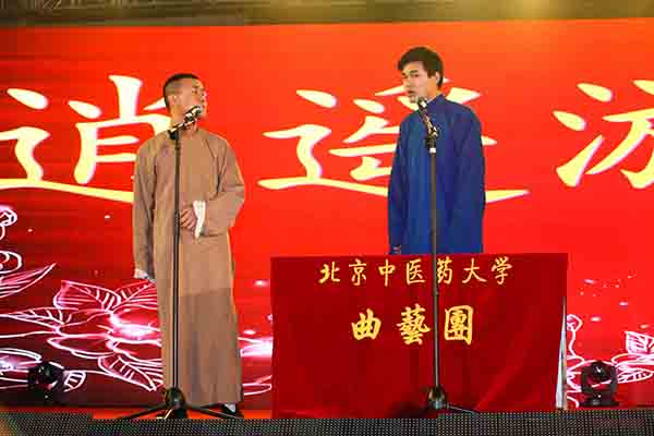 “青春”和“原創”是本次晚會節目的最大的特點。原創芭蕾《走近春天》,唯美拉開了慶典的序幕;情景詩朗誦中一句“北中醫,你是我生命中最美麗的遇見!”深情表達了同學們對母校的赤子之心;舞臺劇《緣來北中醫》與改編歌曲《親愛的》在婉柔細膩的表演中講述了我校學生博愛情懷和志愿奉獻故事;古典舞《鼓·舞》巧妙融合了傳統太極與中國鼓文化,表達鼓舞人心之意;武術表演《境》展示了中國武術的剛柔之美及在我校學生中的良好基礎;古箏合奏《銀河碧波》、民樂合奏《追想·禮贊新校區》表達了對來年入駐良鄉校區的殷殷期盼;民族舞《天山雪情》、情景劇《我是輔導員》展現了教職工及輔導員老師們的青春風采,表達了對學生的愛與祝福;《軍體拳》展現了我校安全保衛工作者們創建平安校園的堅定信心;配音《國醫堂精裝記》、沙畫故事《我的中醫夢》、光影舞臺劇《康復進行曲》展現的文化創意令人稱奇,也表達了同學們立志奉獻于醫療衛生事業的堅定決心;此外,健美操、歌曲聯唱、流行舞、樂隊表演等同學們自編自演的節目讓觀眾領略了北中醫學子活力四射、青春時尚的一面。