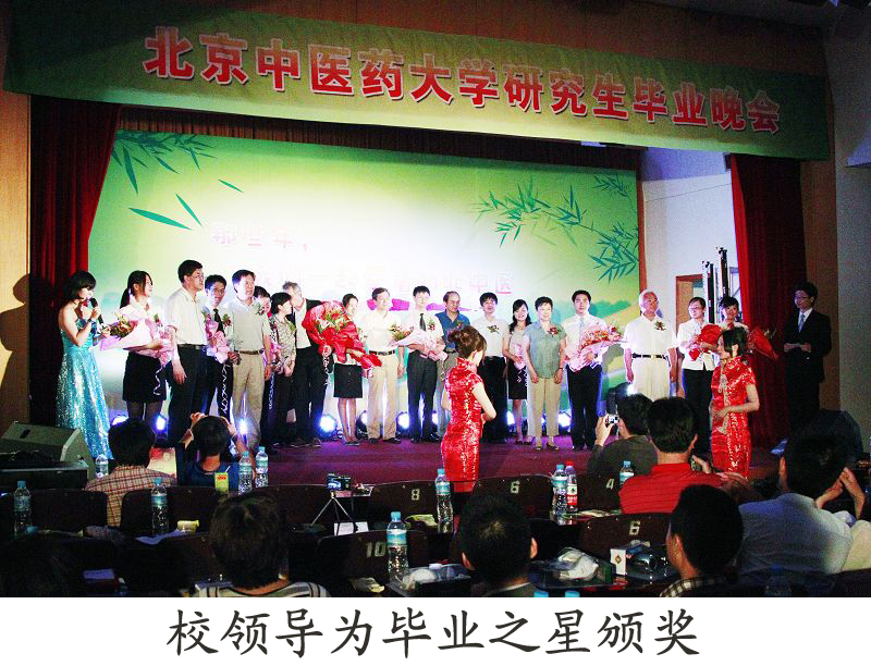 晚會由器樂合奏《賽馬》拉開序幕,原創微電影、手語歌曲《知足》、話劇《西游漫談》、傣族舞《月亮》、歌舞青春《且行且珍惜》、大型服裝秀《岐黃印象》、街舞《最炫民族風》、女生合唱《when you believe》、歌曲串燒、原創作品《那些年,我們愛著的北中醫》等精彩節目,不斷將晚會推向高潮。王慶國副校長和管理學院朱文濤老師,還為大家演唱了歌曲《我們好好愛》,博得了觀眾的熱烈掌聲。晚會還邀請了中央音樂學院加拿大國際聲樂大賽金獎得主李娜演唱了歌劇《卡門選段》。在 “閃亮校園•畢業之星”十大人物頒獎儀式上,基礎醫學院的劉丹彤、王娟,中藥學院的巴寅穎、陳浩、黃明峰,第一臨床醫學院的王建云、菲德里克,針灸推拿學院的陳昌樂、姚海江及第三臨床醫學院的王丹同學獲此殊榮。獲獎學生的導師對學生表示祝賀并寄予殷切的希望,學生用鮮花和鞠躬表達了對導師的崇高敬意。來自各學院的11名同學獲得“閃亮校園•畢業之星”十大人物提名獎。著名媒體人梁冬也應邀來到了晚會現場,向畢業生表示真摯的祝福。