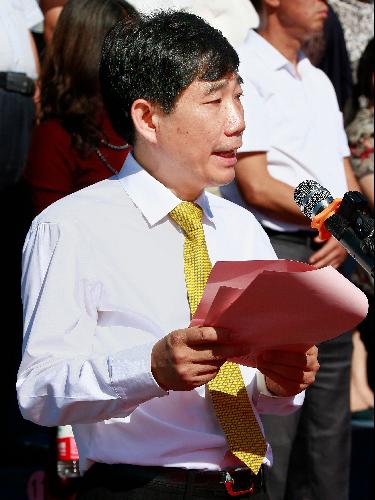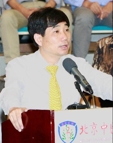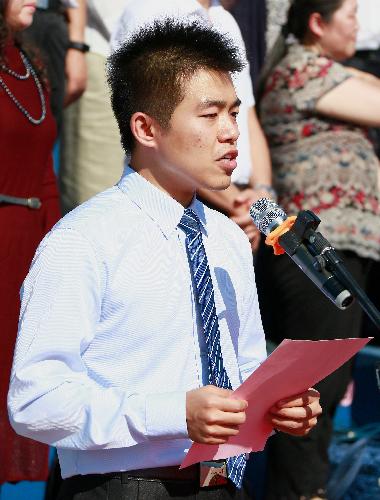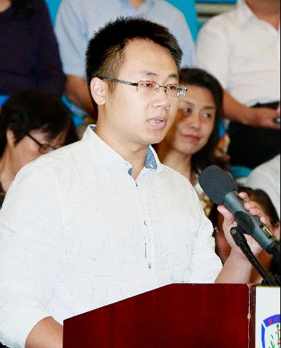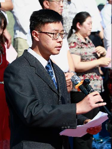 教師代表、中醫學院教授陳明發言。陳明教授用樸實的語言,表達了對同學們深切的愛和責任。他說,北中醫教師愿把畢生精力和青春獻給美麗的校園,也始終奉行“教學大于天”的準則。他對新生提出三點要求:一是學做人,做一個真誠的人,一個真心的人,一個真正的人;二是學做事,做有利于學習之事,做有益于學校之事,做服務于人民之事;三是學做學問,做中醫中藥的學問,做繼承發揚創新的學問,做走向國際的學問。