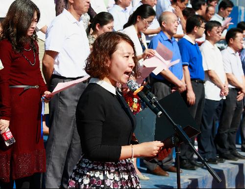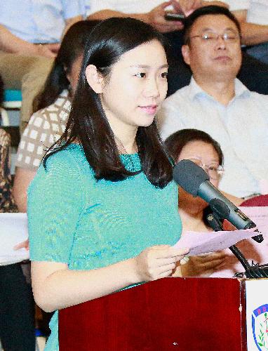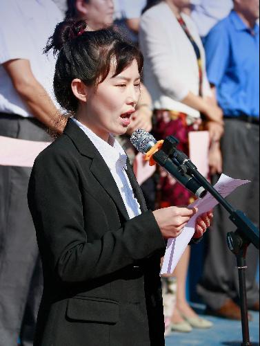 在校生代表、管理學院2015級信息管理與信息系統班張麗鑫同學向新生講述了豐富多彩的大學學習生活,并分享了學習中的四字體會:“勤”“求”“厚”“德”。她希望學子們成為北中醫勤奮的代名詞,成為新時代復合型、創新型人才,拓寬生命的寬度,增加生命的厚度,成為有擔當,敢于向祖國、人民承諾的棟梁之才。