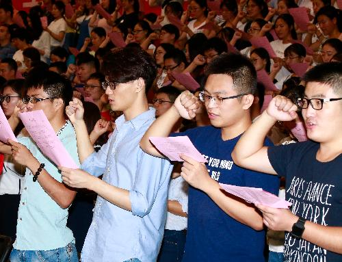 研究生工作部李琬玢老師帶領全體新生誦讀了《大醫精誠》(節選)。