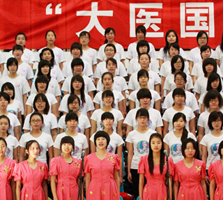 誦讀會以全體學生齊聲合誦《大醫精誠》(選篇)為開篇。隨后,護理學院和管理學院帶來了詩朗誦《水調歌頭》,飽含逸興壯思、雅量高致之意;第一臨床醫院、中藥學院和人文學院朗誦了《將進酒》、《春江花月夜》經典篇章;第二臨床醫學院的留學生和中國學生一起,在優美的古箏曲《高山流水》中朗誦了《黃帝內經•寶命全形論》;針灸學院的同學誦讀了《傷寒論原序》(選段),同學們身著漢服,再現醫圣張仲景的輝煌歷程,寄托了古今中醫人對岐黃藝術的無限熱愛和忠誠;基礎醫學院以2010級中醫教改班的新生為核心力量,誦讀了《黃帝內經•四氣調神論》的片段,讓大家感受到了古人四時養生、及治未病的思想;港澳臺中醫學部和國際學院的留學生們也積極踴躍地參加了本次誦讀活動,他們組隊誦讀了《大醫精誠》和《勸學》的選段,得到了全場最熱烈的掌聲。各院誦讀展示完畢后,評委們從形式儀表、隊伍組建形式、朗誦技巧和選讀內容等方面給予精彩的點評和指導。此次誦讀會評出的最佳組織獎、最佳表現獎等獎項,將在本屆文化節閉幕式上予以表彰。