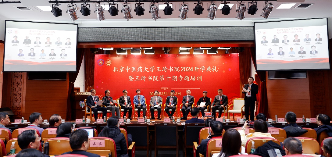 校長徐安龍在主持中介紹說,王琦院士倡建書院,開啟了書院教育模式。王琦書院以培養(yǎng)全方位中醫(yī)人為目標(biāo):培養(yǎng)“厚德載物、道濟天下”的中醫(yī)人;培養(yǎng)“博學(xué)多識、古今貫通”的中醫(yī)人;培養(yǎng)“中西融匯、守正創(chuàng)新”的中醫(yī)人。多位院士名家、國醫(yī)大家、文化賢哲在書院這片傳承精華、守正創(chuàng)新的學(xué)術(shù)園地上,播種指引,獻計獻策。這是院校教育和師承教育的有機融合,是對中醫(yī)藥教育模式的創(chuàng)新之舉。