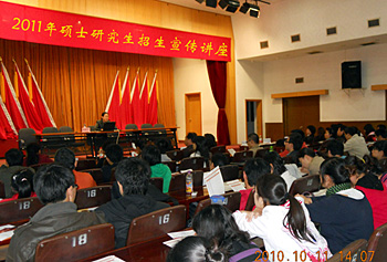 活動中,研究生處副處長田潤平首先圍繞“研究生教育與發展、研究生選拔及如何備考”三個方面向同學們進行了生動講解,并啟發同學們要做好自己的宏觀規劃,以自己的特長與興趣為出發點,結合我校學科優勢、發展前景、社會需求選報專業。各學院負責研究生招生工作的老師還針對本學院概況、培養特點、學科優勢等方面分別作了詳細介紹。