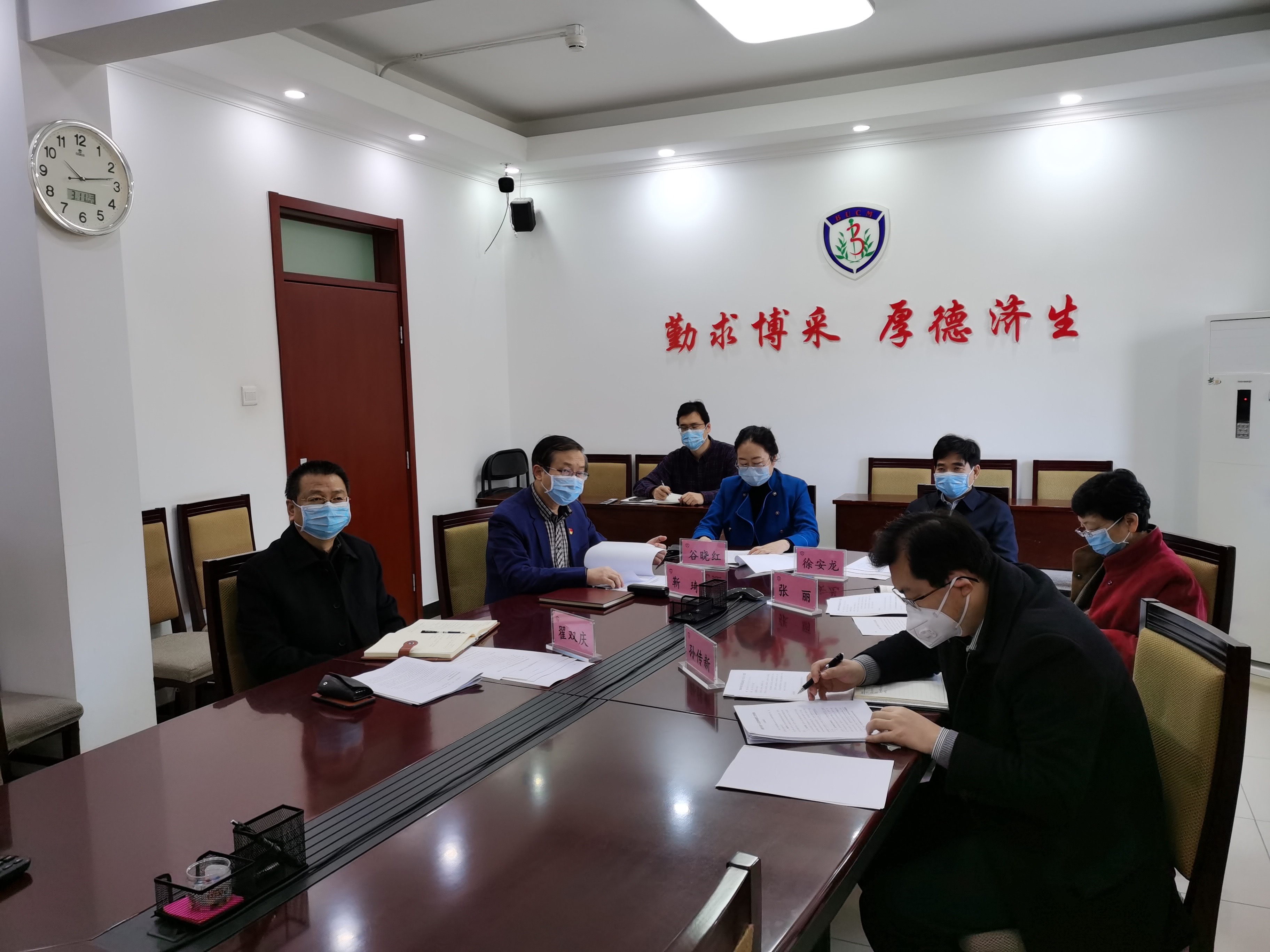 會前,全體與會人員學習了《北京中醫藥大學2020年黨建思政工作要點》和《北京中醫藥大學“三全育人”綜合改革方案》(電子版下發給與會者)。