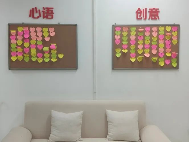 事務大廳還設置了“心語心愿”“ 創意種子”表白墻,供大家記錄心情和靈感。