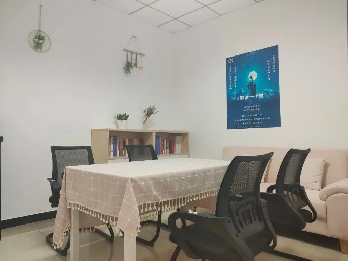 除了辦理各項事務,這里還為同學們提供一個靜心讀書的環境與氛圍。每周周二、周四下午14:00—17:00,同學們可前往事務中心活動室現場讀書,參加“靜讀一小時”活動。每次時長至少為一小時,閱讀過程中不可以使用手機或電腦,不間斷或外出。